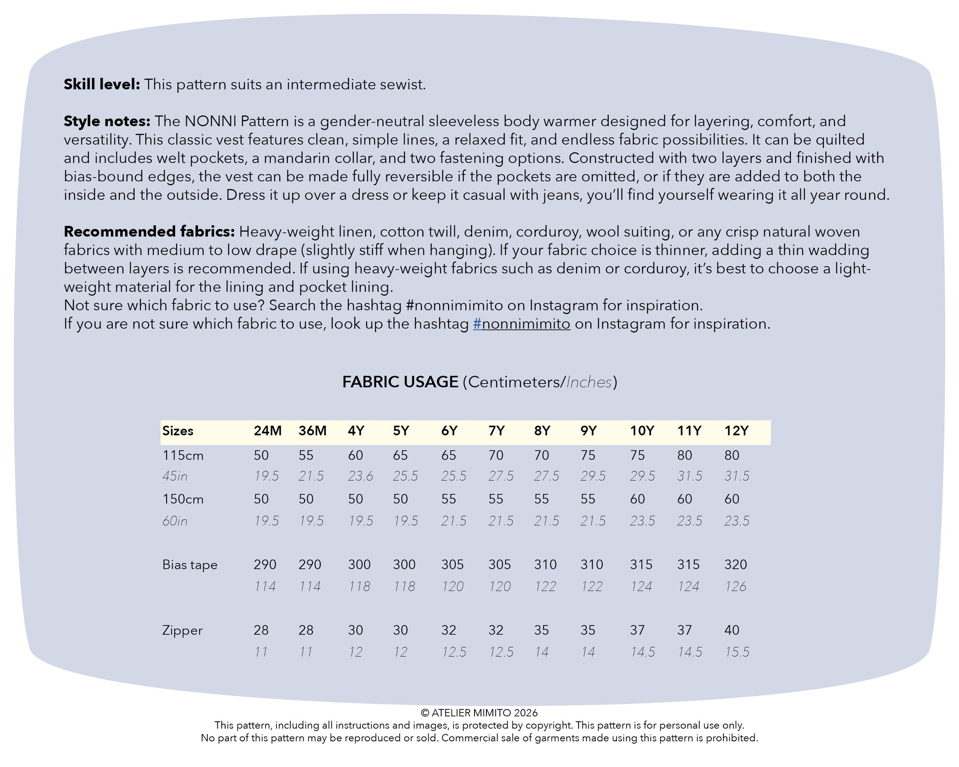 Not sure which fabric to use? Search the hashtag #nonnimimito on Instagram for inspiration.